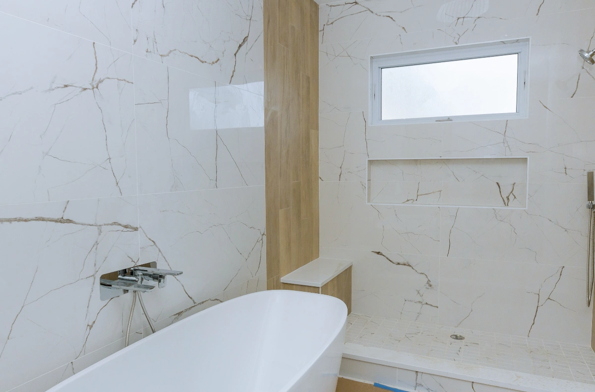 Quartz surfaces offer engineered perfection for bath wall applications. Manufactured from natural minerals combined with polymer resins, these materials provide consistent patterns throughout installations. Color options span from pure whites to dramatic blacks, with contemporary patterns or designs mimicking natural stone veining. The non-porous composition makes them ideal for shower surrounds and wet areas where moisture exposure is constant. Performance characteristics set quartz apart. The material resists staining, scratching, and heat damage better than many alternatives. UV stability prevents color fading in baths with natural light exposure. Large-format options minimize seams, creating sleek, modern statements that suit contemporary design aesthetics. Granite brings natural beauty with exceptional durability to bath walls. Each installation displays unique mineral patterns formed over geological timeframes, ensuring your space remains distinctive. The material’s extreme hardness resists damage from daily use while maintaining its polished appearance for decades. Dense composition prevents moisture absorption when properly sealed. Color variety in granite exceeds most alternatives. Deep blacks create dramatic contemporary statements. Warm browns and beiges complement traditional interiors. Lighter grays with subtle veining brighten spaces while adding visual interest. The material works beautifully in both full- wall applications and accent installations. Marble creates spa-like luxury with its luminous surface and characteristic veining. White varieties with soft gray movement bring Italian elegance to Atlanta homes, transforming ordinary baths into sophisticated retreats. The polished finish reflects light beautifully, making smaller spaces feel more open and inviting. Installation considerations for marble require careful planning. While stunning visually, the material’s sensitivity to acidic substances means selecting appropriate cleaning products becomes essential. Honed finishes offer subtle elegance with reduced maintenance compared to high-polish alternatives. When properly installed and maintained, these surfaces deliver unmatched aesthetic impact.